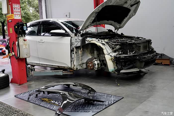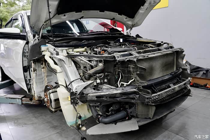 思域拆了叶子板直接可以看到内骨架,这前面是特殊材质的热成型钢。强度要比普通的高几倍
