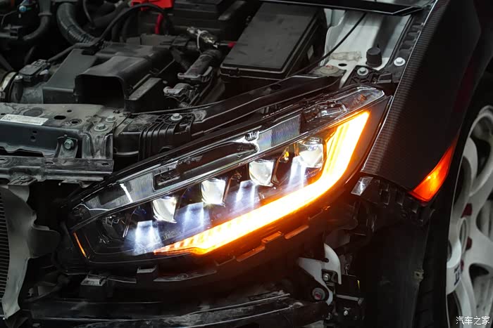 日行灯模式 内部有4颗LED小透镜。相比原厂大灯的反光碗设计显得更加有神犀利。