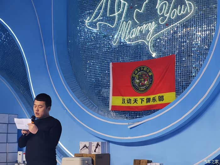 基本上快到十二点,大家都到位之后,年会也即将拉开帷幕,此次年会我们的宗旨就是让车友们吃好,玩好,丰厚礼品管够管饱。主持人讲话拉开了本次年会的帷幕,大屏幕开始播放这一年来汉动天下车友会的活动,下来也就有请我们亲爱的赵博会长总结这一年车友会的成长经历,最后的环节就是抽奖,拿礼品,抽到手发麻,拿到干不动位置。