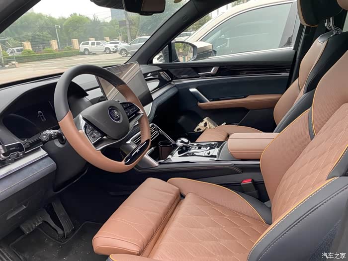 真皮内饰,配色普通,不够潮但还算耐看,没有龙爪氛围灯这点遗憾的无以复加。
