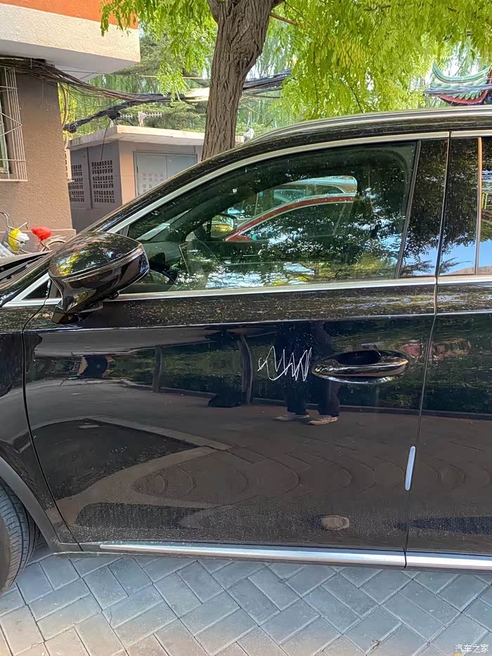 第一滴血发生在小区中,某个夜黑风高的夜晚,不明人士,不明原因,用硬物故意划伤了左侧前车门。