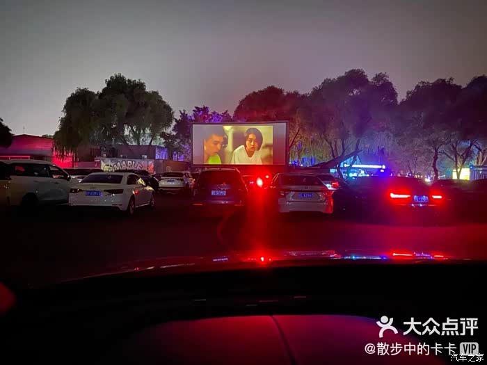 坐在车中,透过前挡风玻璃看电影屏幕,通过车载收音机播放声音,视听效果固然没有电影院好。