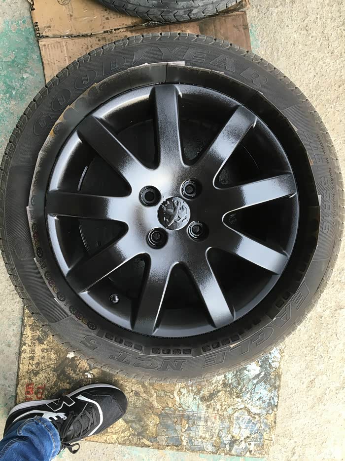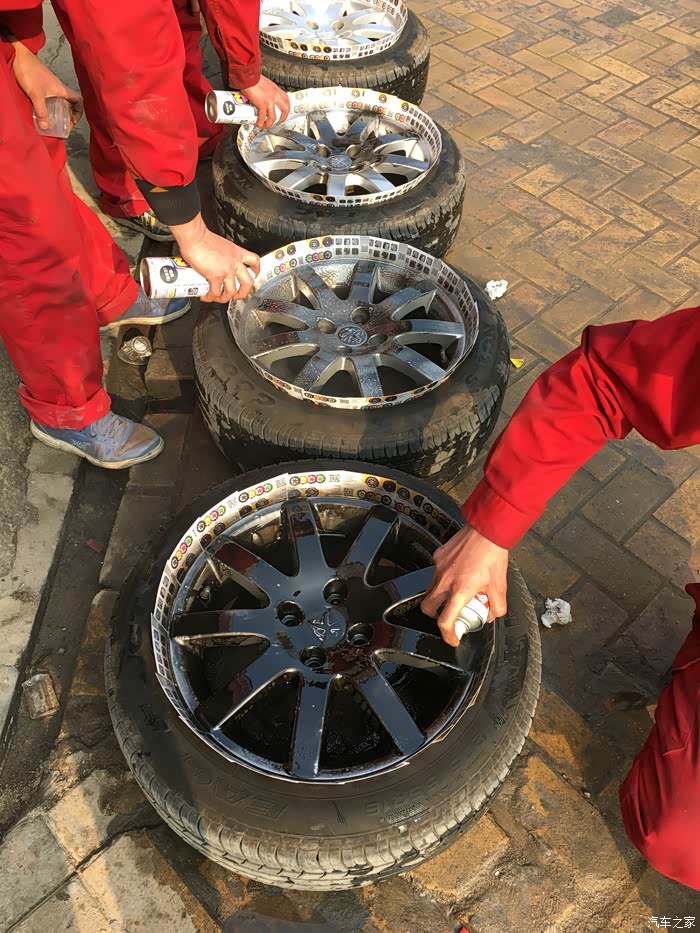 3.喷轮毂时先喷亚光黑色漆(底漆),再喷亮色黑色漆。