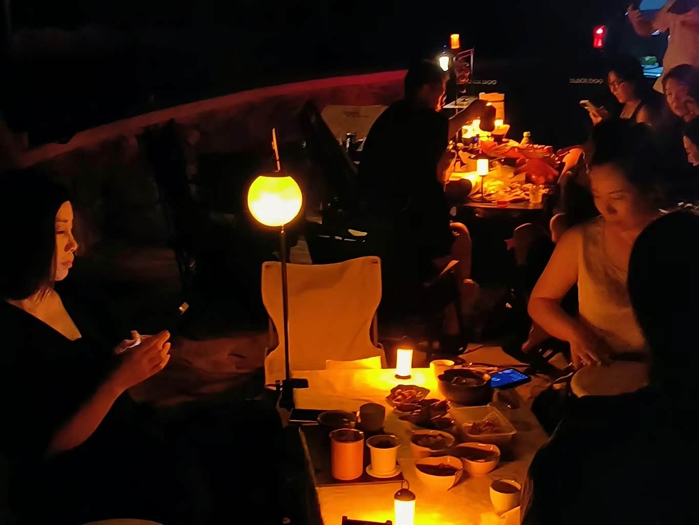 天色暗下来,我们点亮氛围灯,风云T9的贯穿式尾灯在夜色里亮起,红光如丝带般展开,而静影灰车身在夜色里悄悄隐去了白天的细腻,只留流畅的车身线条,和尾灯的红光形成反差,像暗夜里的一道温柔标识。月光洒在茶桌上,海鲜粥咕嘟冒泡,朋友敲起手鼓,我们围着车子唱歌,车机音响的重低音混着海浪声,飘得很远。