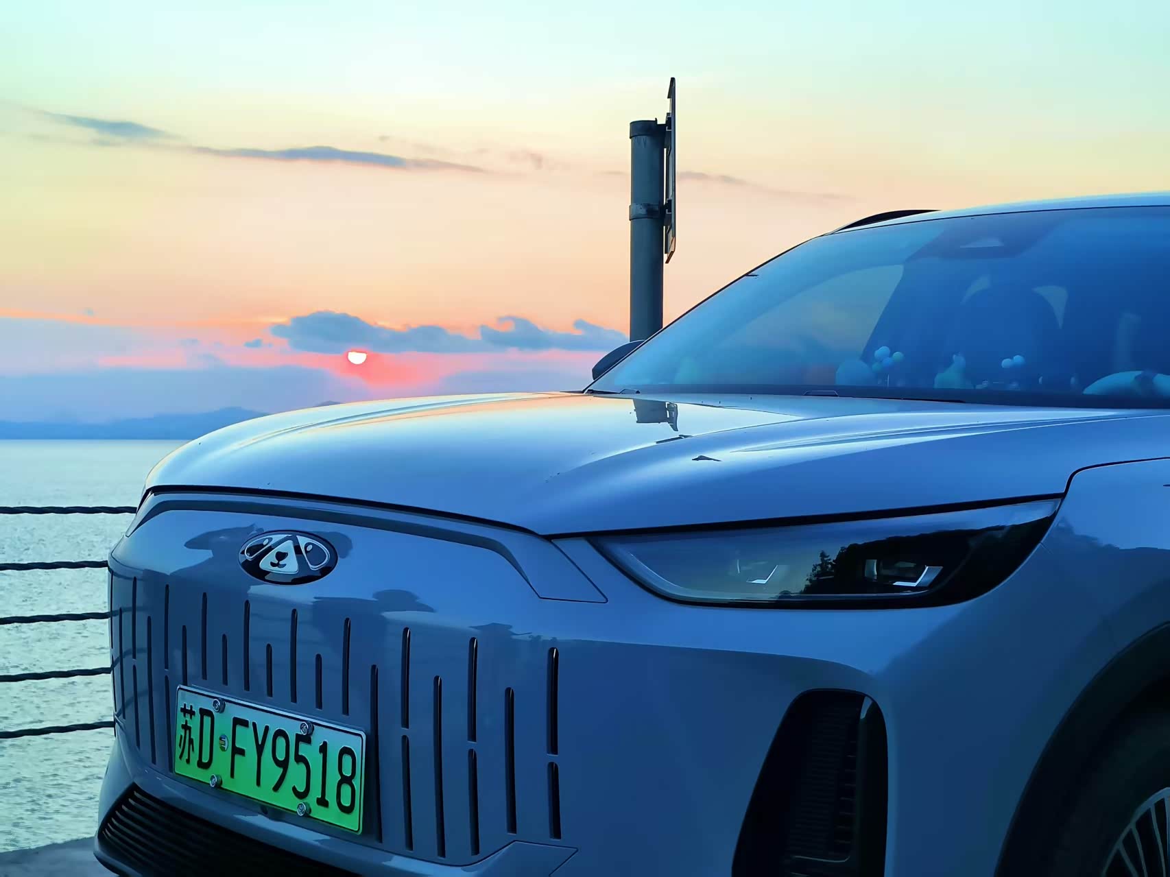 路过观景台时,我们停车看夕阳。风云T9的高坐姿和宽视野太加分,坐在驾驶座上,能清楚看到夕阳沉进海平面,把天空染成橘红、粉紫、淡蓝的渐变色,海水波光粼粼与天空连在一起。转头看身旁的静影灰车身,夕阳在车身上投下流动的光影,从车顶到车门,灰调里藏着层次,像把“海天一色”的温柔,悄悄印在了车上。朋友笑着拍了张照:“这灰车和海景,根本是天生一对。”