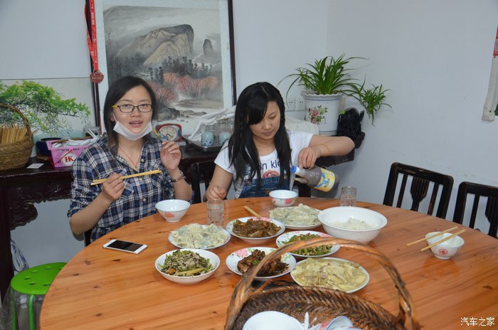 农家的老板给我们庞大的车队找了个大院停车,有心了