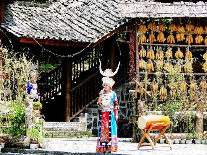 穿上苗族服装留影,乃美女们的打卡节目