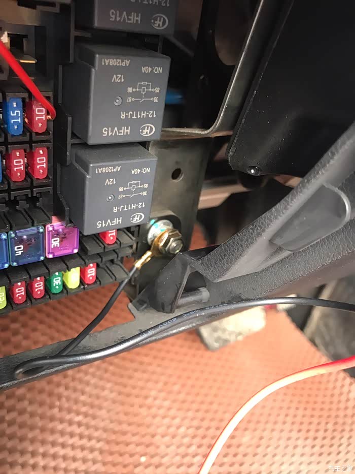 搭铁线固定在这里就行,如果不愿意卸螺丝,就再找个十个的螺帽拧上即可。