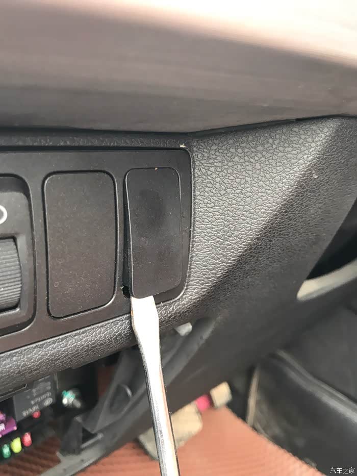 先打开主驾驶左侧的盖子,一拉一提就掉下来了。