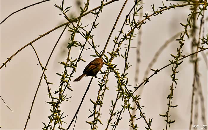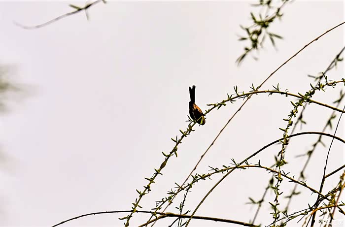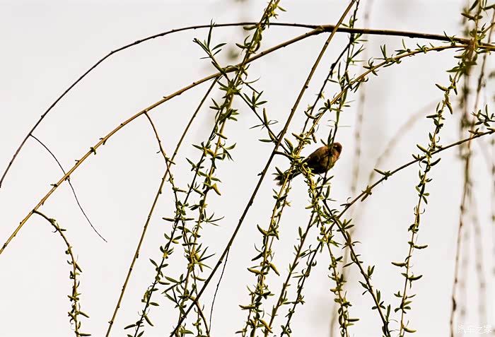 亭亭玉立的柳姑娘垂着嫩绿而柔软的树叶,微风一吹,像是在荡秋千