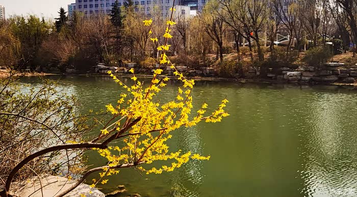 碧波水上,杨柳伴着春风舒展着它那柔软的腰枝