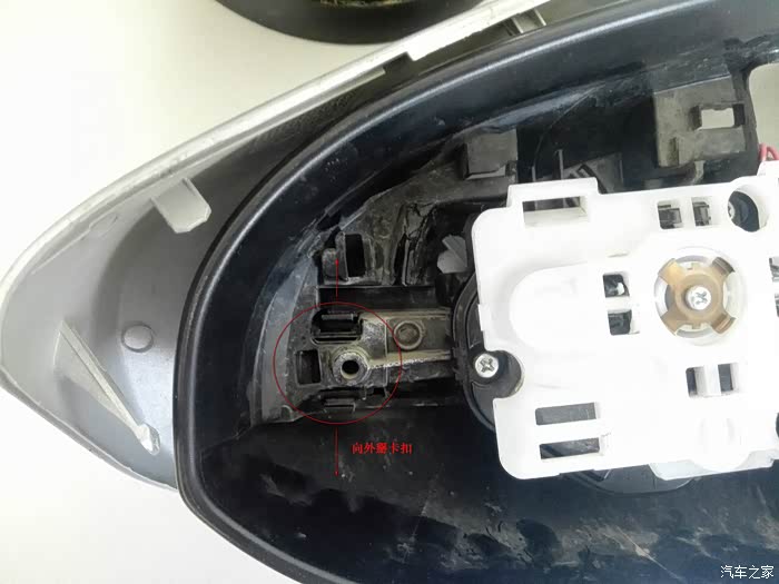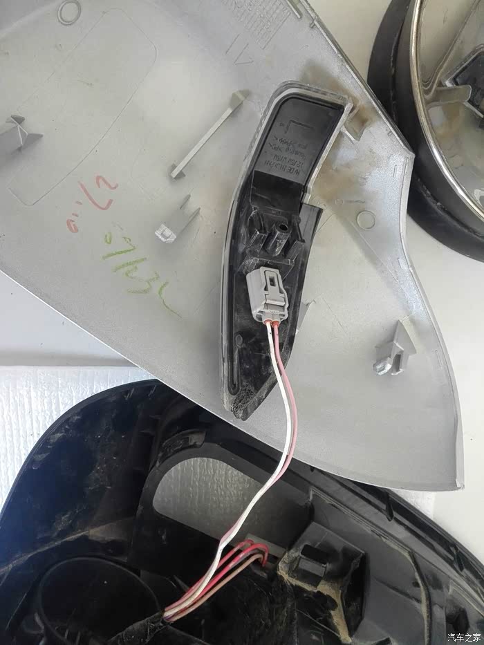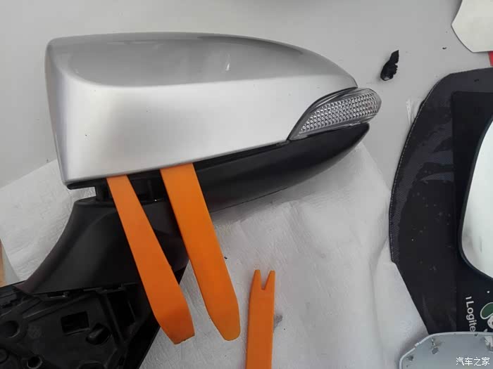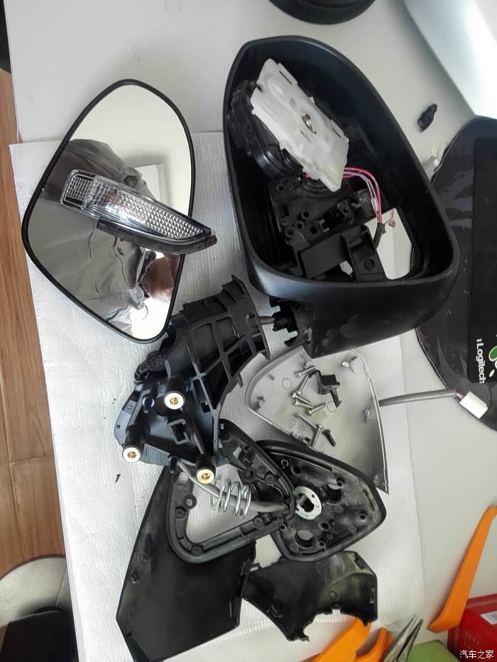 今天没事将更换下来的倒车镜总成给解体研究了一下,很多朋友的倒车镜上的转向灯损坏,发拆解过程,老鸟请无视,希望对要换倒车镜上转向灯的朋友有帮助。