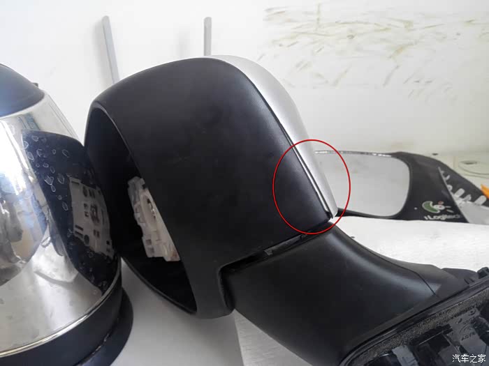 螺丝刀位置有红圈内形状的卡子,用小螺丝刀顶开。(后边的壳子和倒车镜黑框接触的非常严密,不从螺丝刀处下手下一步不好撬)。