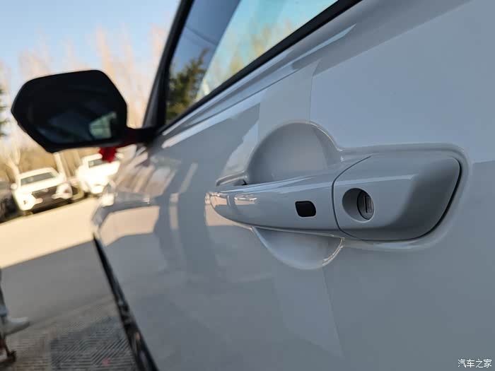还有这款车的门把手按钮轻轻的按一下,我们也是可以使用无钥匙进入的