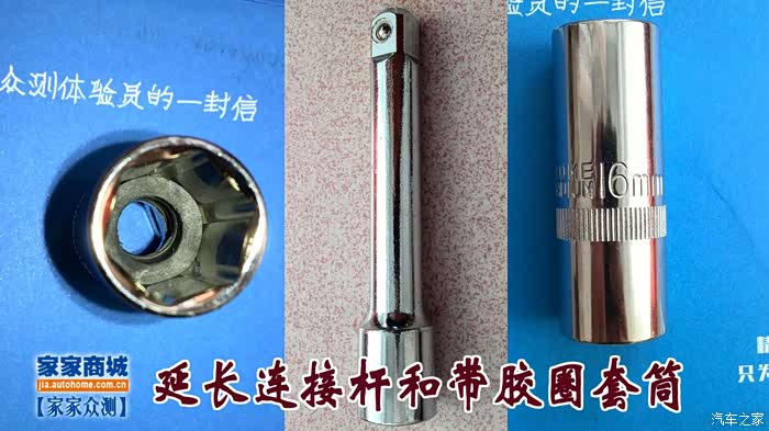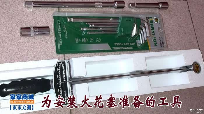 为了搞好这次评测,更深刻体验产品试用每一点滴过程,先购买了一套火花塞安装专用工具:扭力扳手1/2大飞接口、带橡胶圈的16mm专用套筒、1/2大飞接口的10寸和5寸连接杆,加上原有的棘轮扳手、星形扳手等工具,基本上够用了。