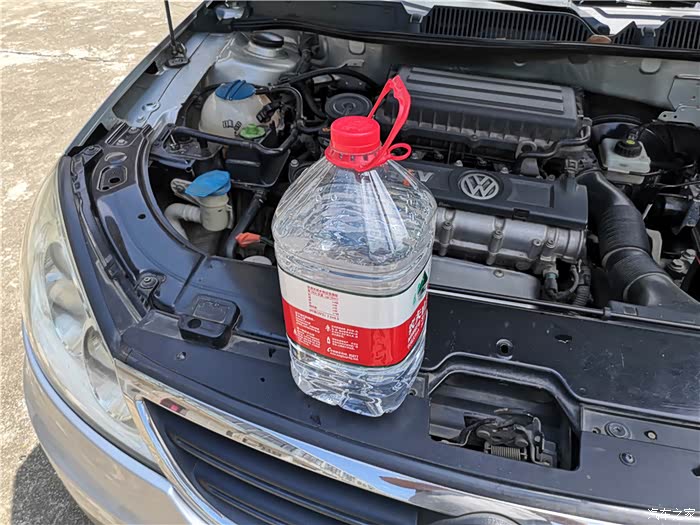 使用去离子水的原因,主要是干净、纯洁、无污染,这样不会和原防冻液混合导致变质。这里也要跟大家分析一下,添加去离子水会降低防冻液的浓度,导致冰点降低,但是我这边是南方,没有冰冻的隐患,如果是北方,温度低,不建议添加水来稀释。