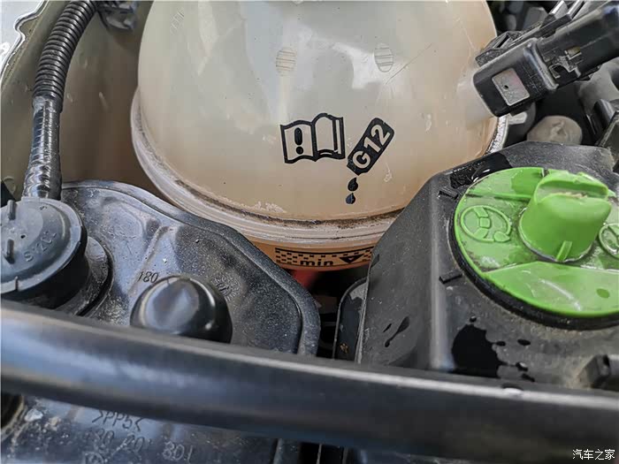 可以看到,储液壶防冻液液面有点低了。