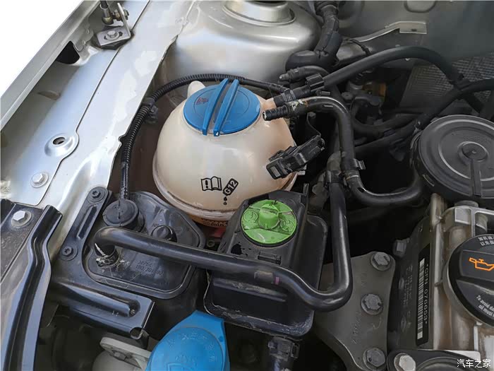最近检查的发动机舱的时候,发现防冻液有些缺失了,仔细一想,可能是上次在改造三通的时候,管道中的防冻液渗漏了部分出来,但是手头又没有防冻液,所以问车友要了“专用的补充液”,自行进行添加。