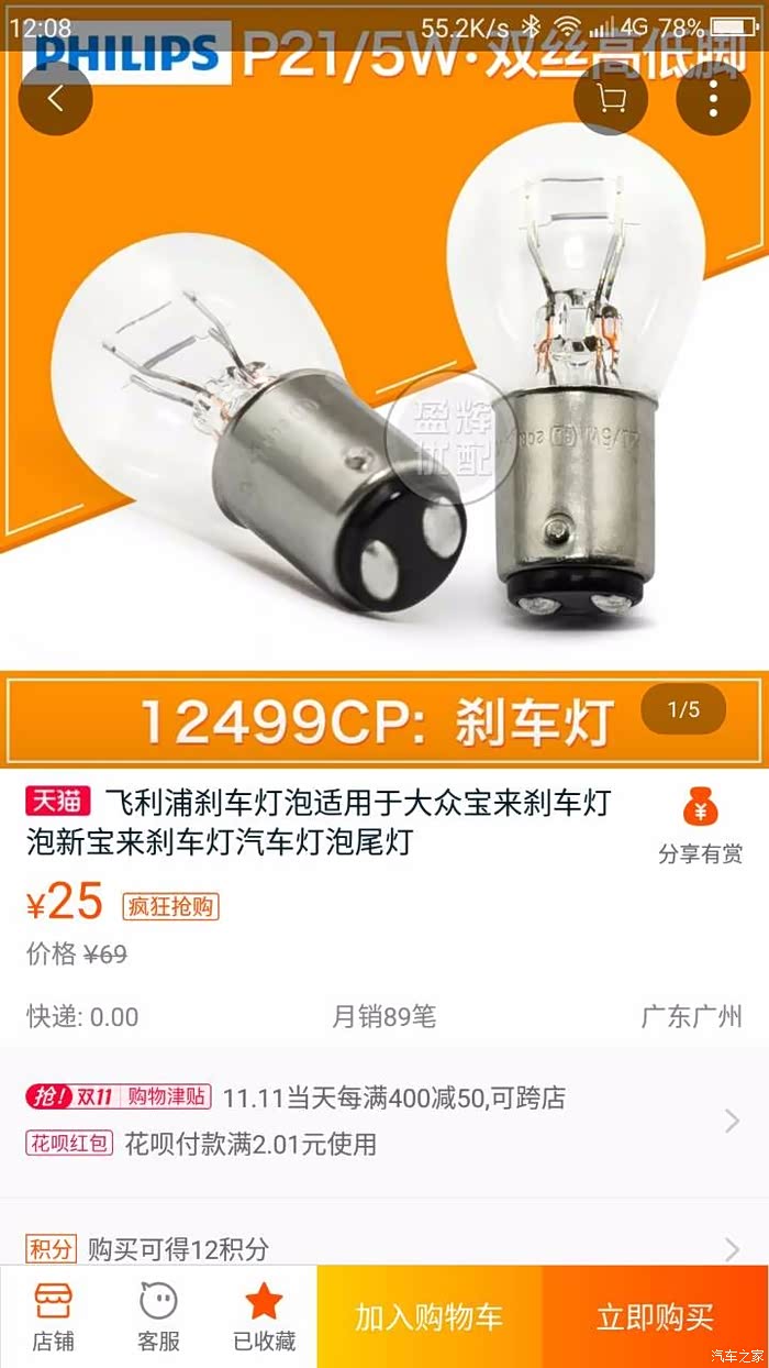 这个是刹车灯的型号,原车的没有品牌,我买的是飞利浦的。2块5一个。