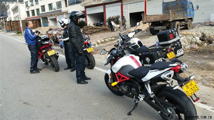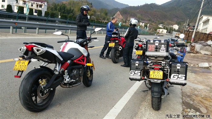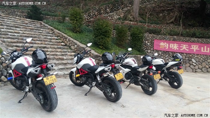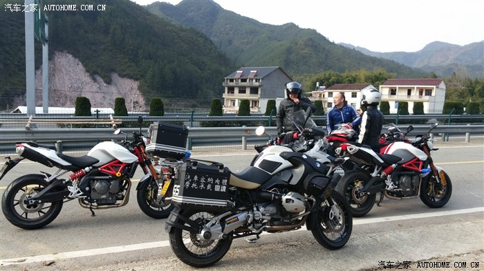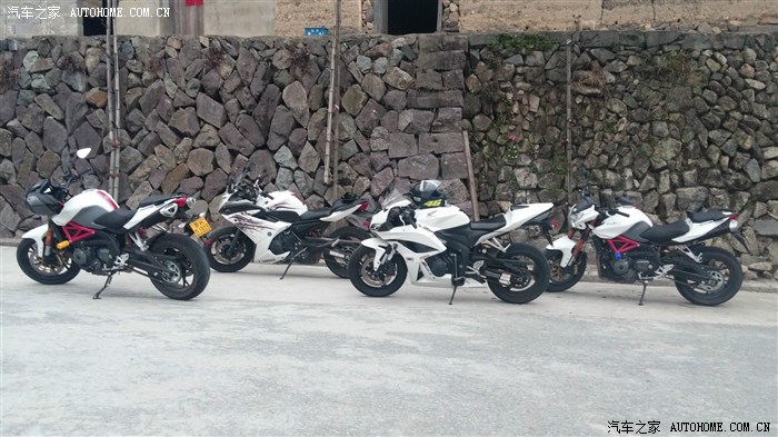 车子阵容是:09年雅马哈FZ6R、黄龙303,黄龙288,春风小狒狒