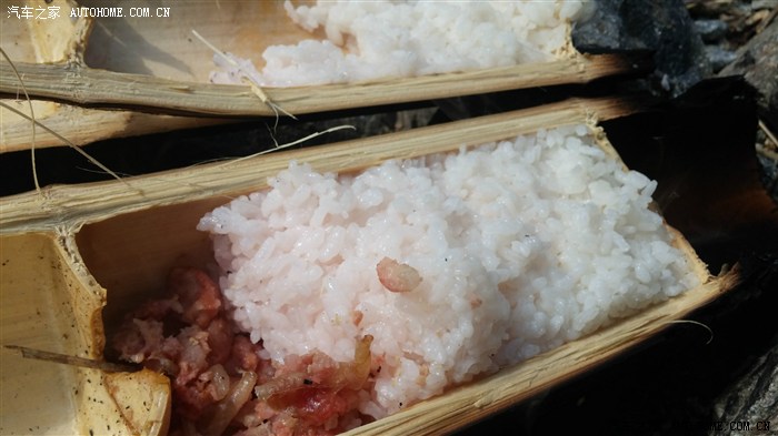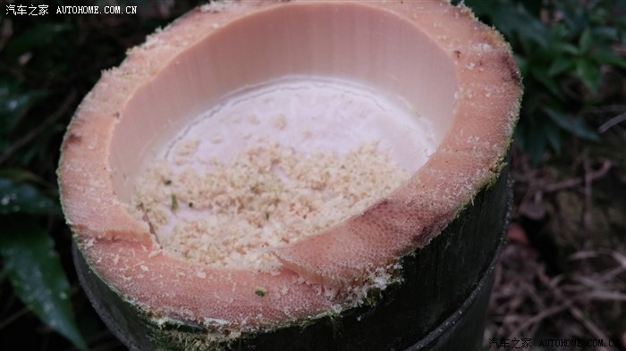 看这一根竹筒的底端,米饭直接被烤成了碳···