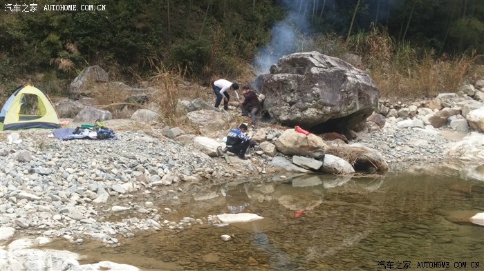 冒烟的那个大石头,有特别好的挡风功能,所以,在这个面生火,是最好的选择