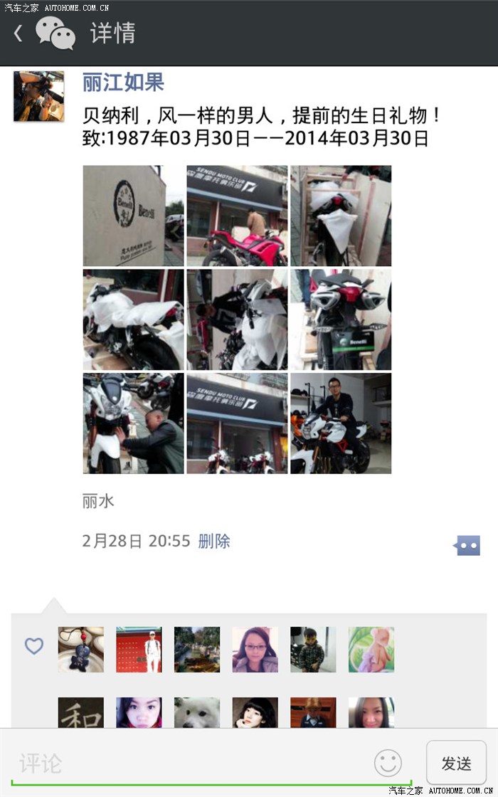 这是在自己微信圈里发的:贝纳利,风一样的男人,提前的生日礼物。