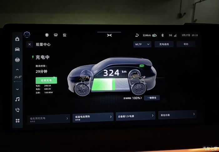 今天一路跑了 753 km,G9 四驱性能版在满电情况下我们一车三人 + 行李,一路上高速开着 XNGP 大部时间分顶着 130 km/h 的速度和暴雨天气极限跑下来的能耗大概 26 kWh/100 km,折算下来实际的极限续航在 370 km 左右。