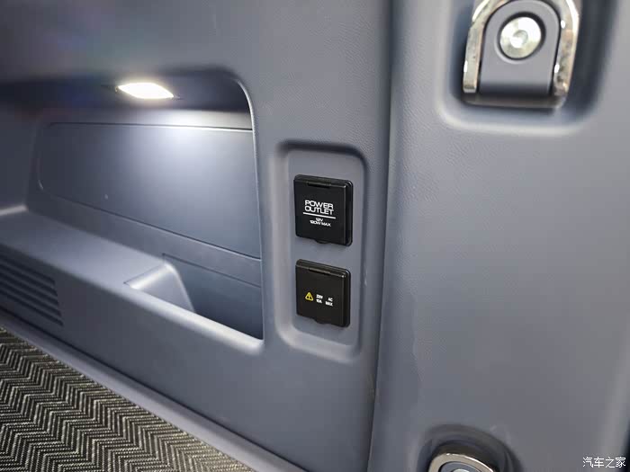 后排座椅的中央还有个可移动的控制面板,能让猛士917从5座的常规车型,瞬间切换成豪华大4座的车型,这点也十分讨喜,坐在后排会很有尊贵感。