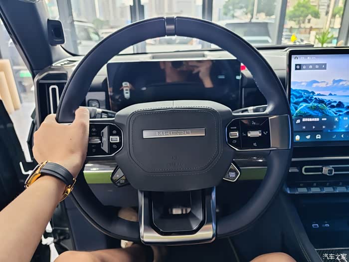 方向盘握感很舒服,按键基本都是触控为主,够高级,我觉得抓起来比路虎卫士还要有高级感。