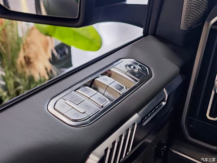 侧窗的按键全部采用亮银色的金属设计,而且统一放置在窗沿的上部,这个设计和我家里的大路虎很相似,霸气的车型就该这样设计!我甚至觉得它比大路虎还要霸气许多!