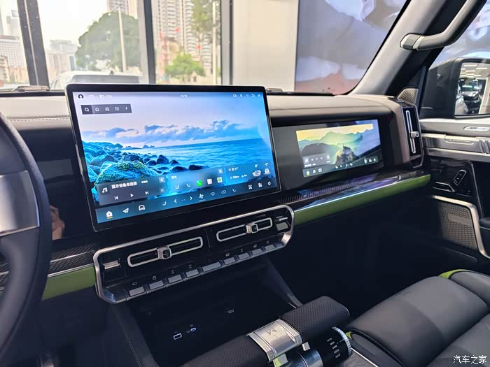 中控和附近区域还有两大液晶屏,这也是自主新能源高端车型常见的操作,科技感确实杠杠的!