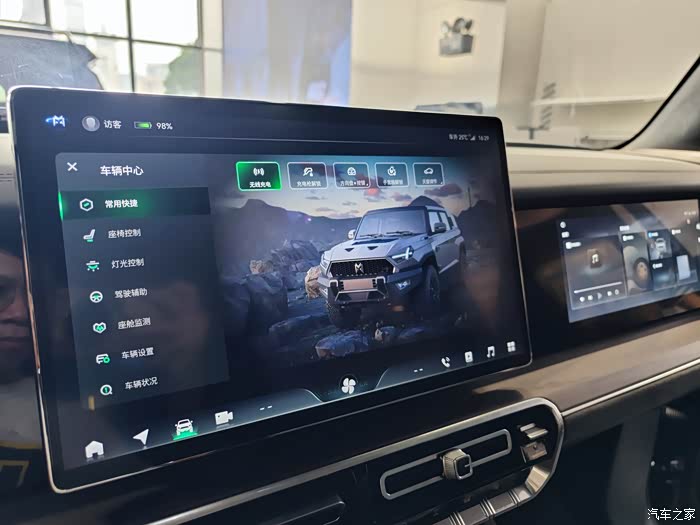 中控液晶屏也能控制全车的大部分功能,这点我在东风的其它车型上面也已经体验过,更别说是作为东风旗舰的猛士汽车了。