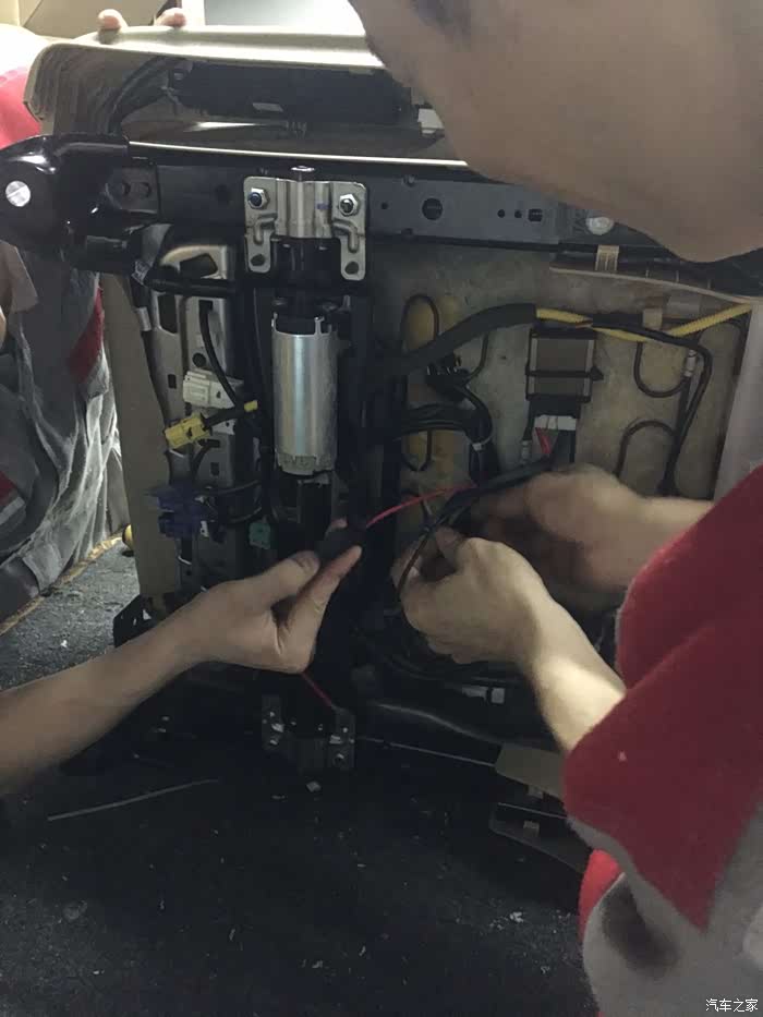 研究座椅背后如何走线,保证不影响原车功能以及座位移动调节