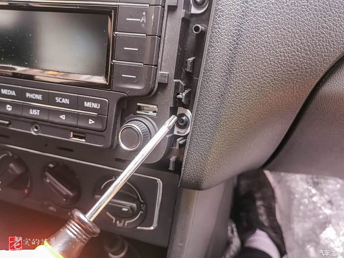 大众的面框还是比较容易拆下来的,稍微用点力就把面框给拔下来了。