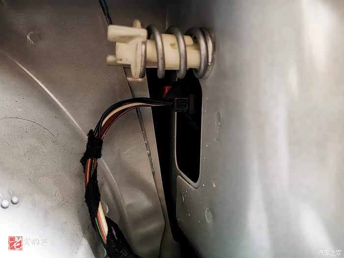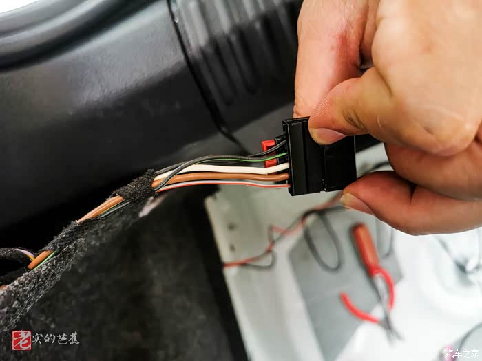 拆开旁边的面板,因为要接入到倒车灯电源取点,所以从右侧走线。