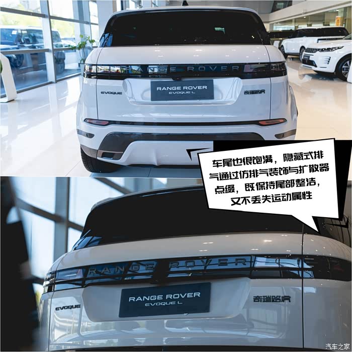 在贯穿式尾灯盛行的时代,揽胜极光L却保留了自己独特的审美,尾灯一分为二,一半飘逸的折线像是变体后的“L”,一半则是工工整整的“L”,我倒是蛮喜欢这种设计的。