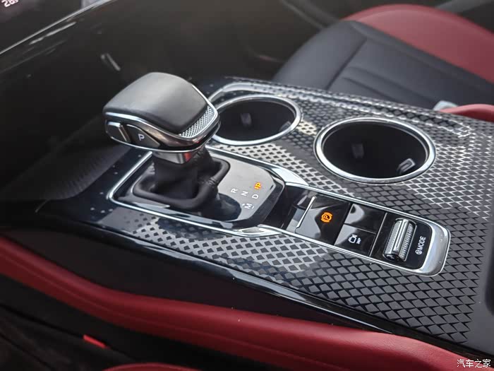 精致小巧的挡杆,手感相当好。前方配有两个手机无线充电卡位