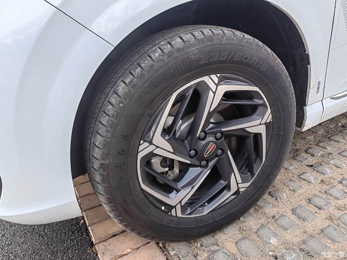 金属灰五辐式雪花造型铝合金轮毂,配以235/60R18红旗定制轮胎,有专属红旗logo
