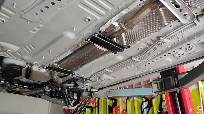 原厂是有发动机护板的,只不过是塑料的,聊胜于无吧,后面在油管这侧加装了底盘护板,另一侧就裸着了