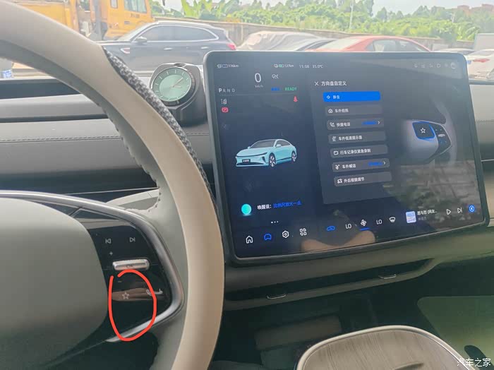 我们a07的方向盘还有个小功能,这个按键就在方向盘右边,OK键下的★按钮,我们长按的话就会出现方向盘自定义界面,然后我们可以在里面设置功能。