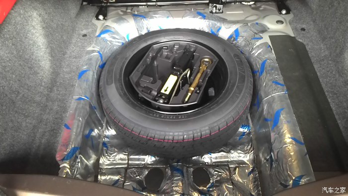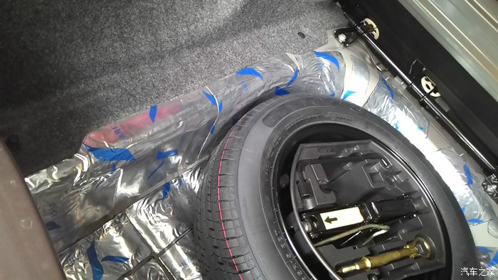 。同志们感兴趣的可以把备胎拿出来看看,整个后备箱放置备胎的舱内没有贴止震板,全部裸露铁皮,只有平台上贴了一条