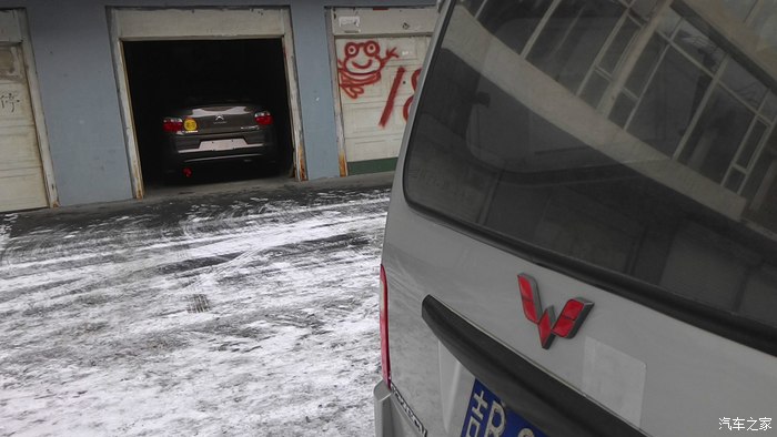 自家车库里的小爱,刚露出半个PP,车库门上是我和女儿的涂鸦之作