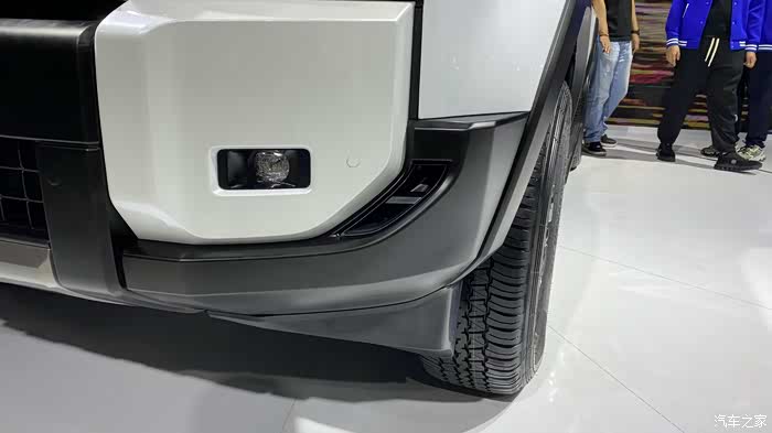 外观部分,整个车很方正,线条也非常硬朗,营造出强悍的风格,两侧大尺寸电流矩阵大灯与格栅融为一体,这个矩形的进气格栅还挺好看的,方程豹品牌LOGO被放置格栅中央,紧接着散热格栅,下方则是越野味道很足的银色护板。