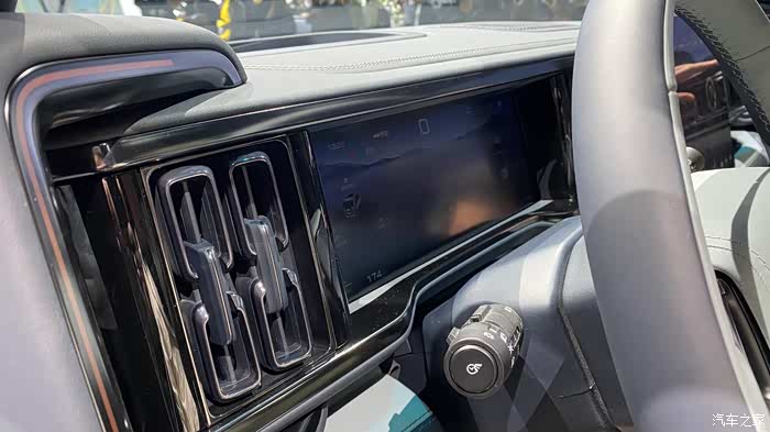 屏幕依然是个大黑边,主要显示车辆信息,保留很多实体按键,看起来质感挺ok