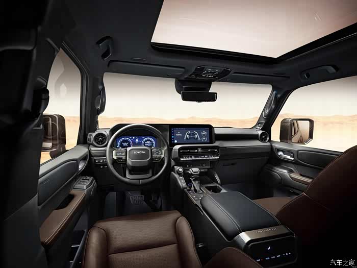 内饰方面,有点雷车的感觉喔,认真看材质和设计,没有过多的装饰,就是原汁原味的硬派风格。中控台上的12.3英寸(入门版为8英寸)触控屏将配备丰田最新的娱乐系统,配置上还将会拥有T-Connect SD导航系统、新一代Toyota Safety Sense系统、蠕行模式以及陡坡缓降等越野功能。