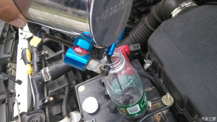 关于机油透气壶,有很多种,有国产微型双瓶的,也有仿国际大牌CUSCO的大罐的,还有在大罐里做冷凝结构的。而使用效果有人说有用,也有人说没用。不过我在了解了一些相关的东西之后,个人认为,对于我这种喜欢大油门、高转速的,应该是有必要的。