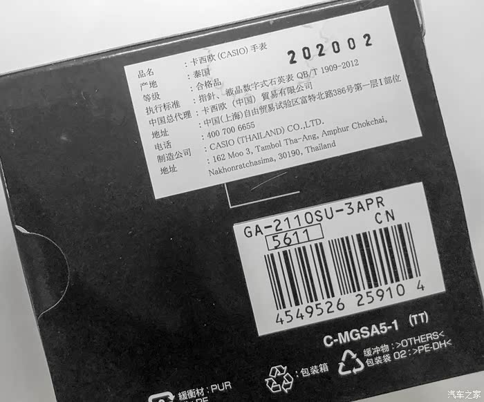 背面标明了产地和产品型号:GA-2110SU-3APR,泰国生产。萨瓦迪卡~