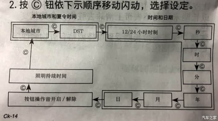1、左上(ADJUST)按键负责时区、时间、按键音、照明时间的设置入口