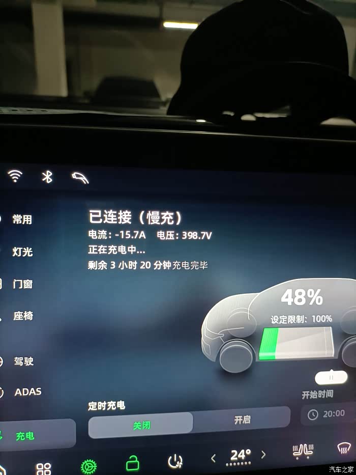 新提的增程版285舒享,今天用新安装的充电桩充电,在车里屏幕显示电流:_15.7A,电压:398.7V ,不显示功率!本人物理太差